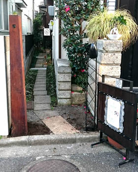 この小路を入る・・・ もそもエントランスのアートワークを