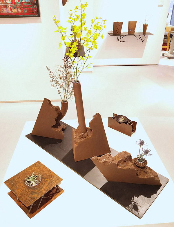 私は鉄錆小作品を、 新旧十数点出展します。 花器、時計、香炉などを 私なりにアレンジした インテリア系立体作品として 楽しんでいただければ幸いです。