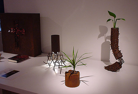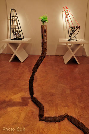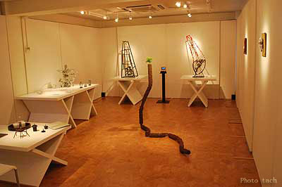 大小、30点程度の作品を展示した、初の二人展! 同じ金属素材を使う後輩作家