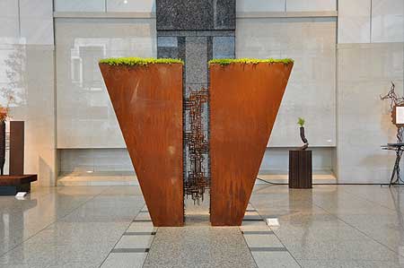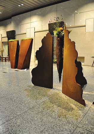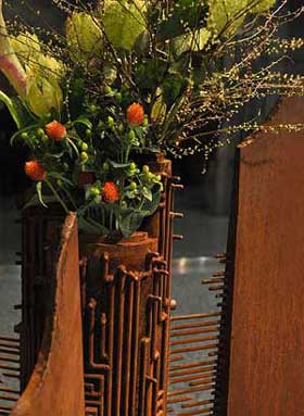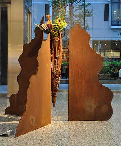 共存の棲家 花器的な要素を持った鉄彫刻 3枚の壁に囲まれたところは、 |