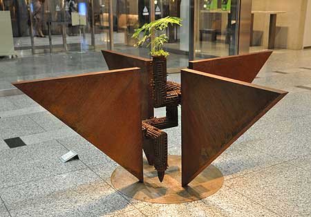 プラントの概念 花器的な要素を持った鉄彫刻 不安定な幾何形体も、 |
