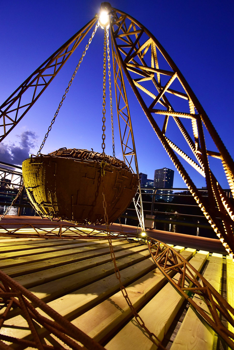 創生の時空間 核となる中心部は太古から姿を変えず命をつなぐ「オウムガイ」がモチーフです。 天王洲の運河から太古の海へのつながりや、 |