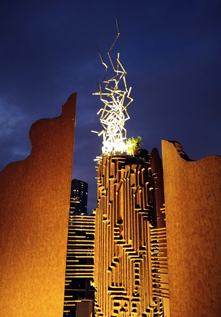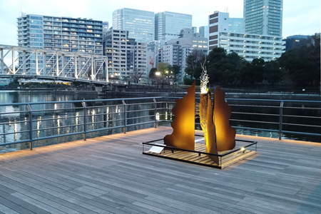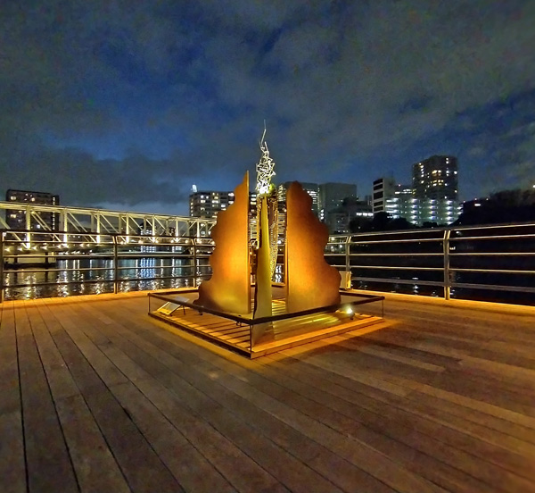 長年壁画アートの活動をされている寺田倉庫さん主導のアートフェスに初の立体作品として日比作品を展示中です。 10月イベント終了後に一旦撤去しましたが、照明を仕込んだ台座を新設し、この年末から再展示開始しました。