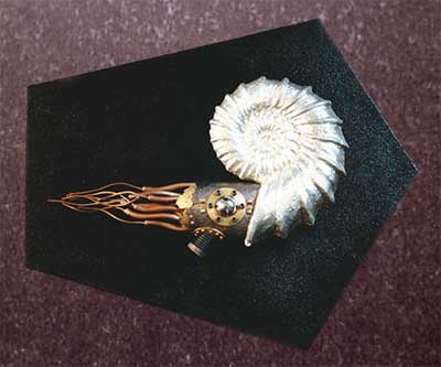 右レリーフ作品は奥に展示した2つのシリーズで、漆板に金属のオブジェをあしらった作品 作品名 |