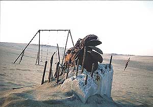右下 浜松の砂丘に作品やらブランコやらを配しての撮影