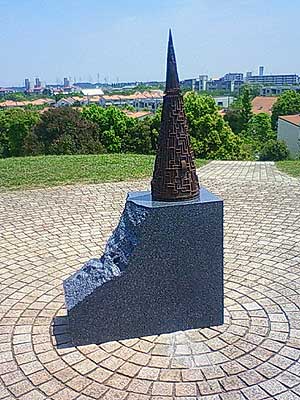 ある公園のモニュメント、、という設定で、 ロケ地の公園に鉄彫刻 「天地」 を設置し、 撮影しました 。