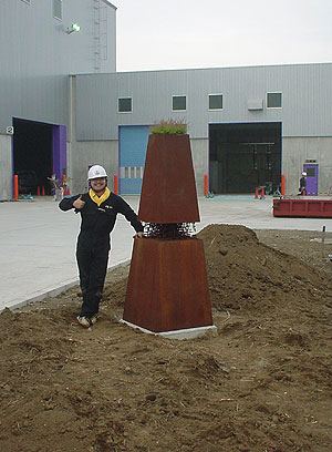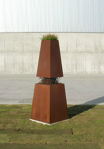 植物と鉄のコラボシリーズ・・・ 巨大な花器的モニュメント「みちしるべ」 東金属株式会社(金属リサイクル) 埼玉新工場操業記念モニュメント