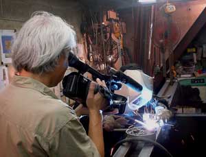 狭い工房ですみませんが、 中野英世カメラマンと、