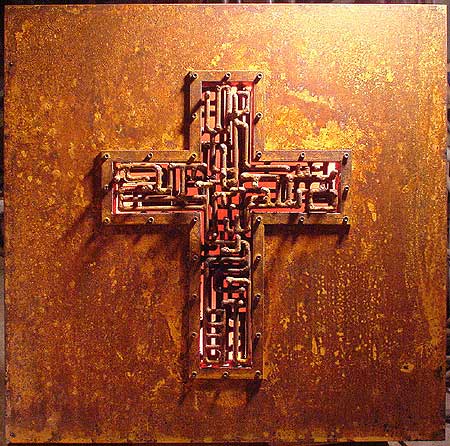 半立体の十字架が 仕込まれた照明に 浮かび上がる作品です。 |