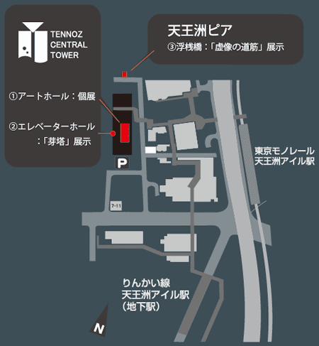 【天王洲セントラルタワージャックの夏】 個展の他に2ヶ所展示があります。 ●アートホール奥の ●天王洲ピア桟橋には を展示しております。 日比淳史