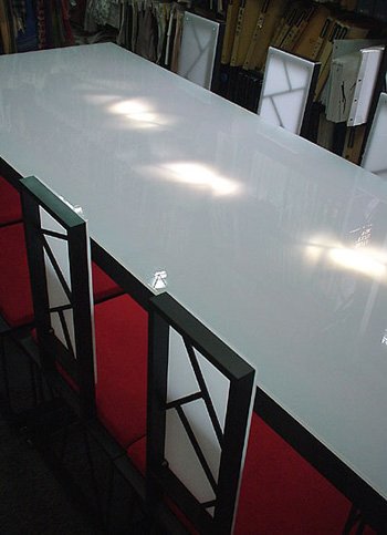 Beautexさんのご依頼で 接客/打ち合わせテーブルセット制作 (2011年) テーブル W2000×D800×H700 素材/鉄・乳白アクリル・LED照明